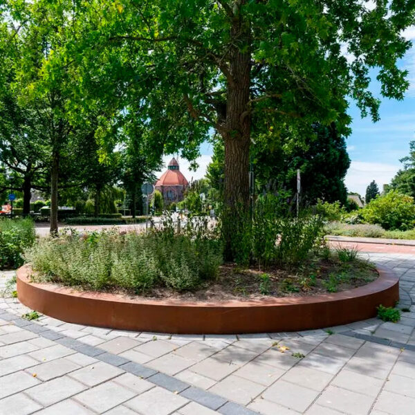 Kestävä ja näyttävä corten-teräksinen reunatuki, jonka leveä yläreuna tuo lisää mahdollisuuksia suunnitteluun. Soveltuu erinomaisesti julkisiin ulkotiloihin, kuten puistoihin, aukioille ja taloyhtiöiden piha-alueille, joissa vaaditaan sekä toimivuutta että visuaalisuutta.