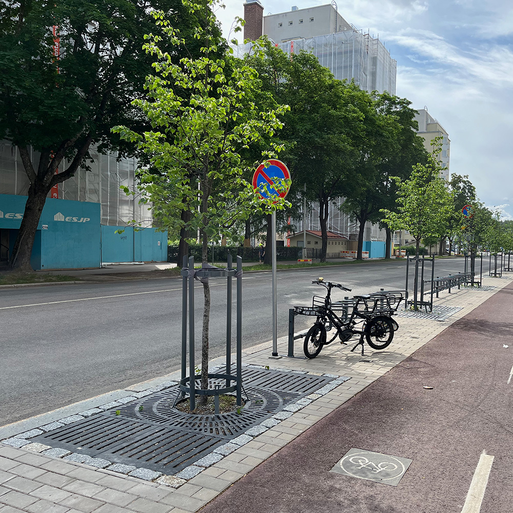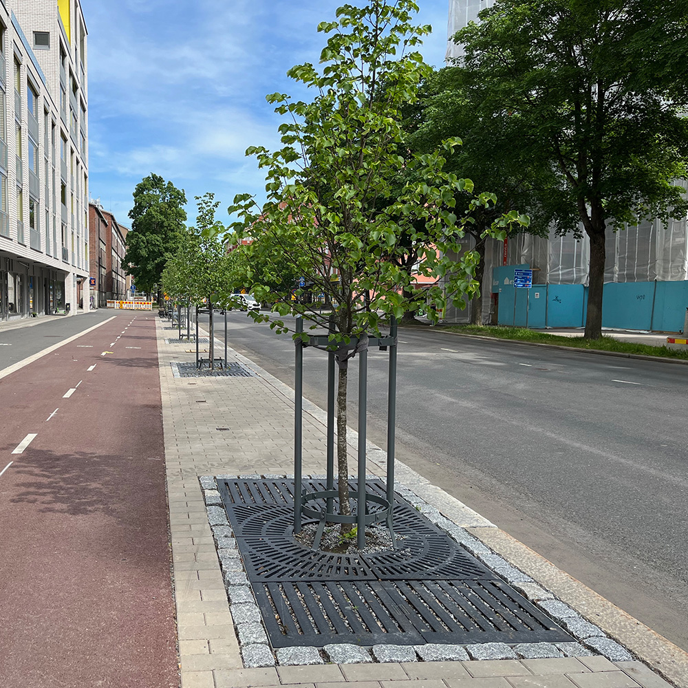 Lateral-maaritilän muoto sopii erityisesti moderniin ja urbaaniin katukuvaan. Ritilästä on mahdollista rakentaa suurikokoinen yhtenäinen ja tyylikäs juurisuojaratkaisu. Läpäisevää pinta-alaa voidaan lisätä ritilää pidentämällä.