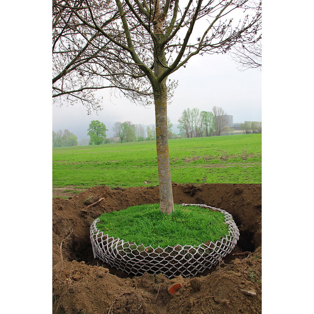 Voit asentaa myös lisäverkon vaakasuoraan istutuskuopan pohjalle – näin myös syvemmät juuret saavat vettä tehokkaasti.